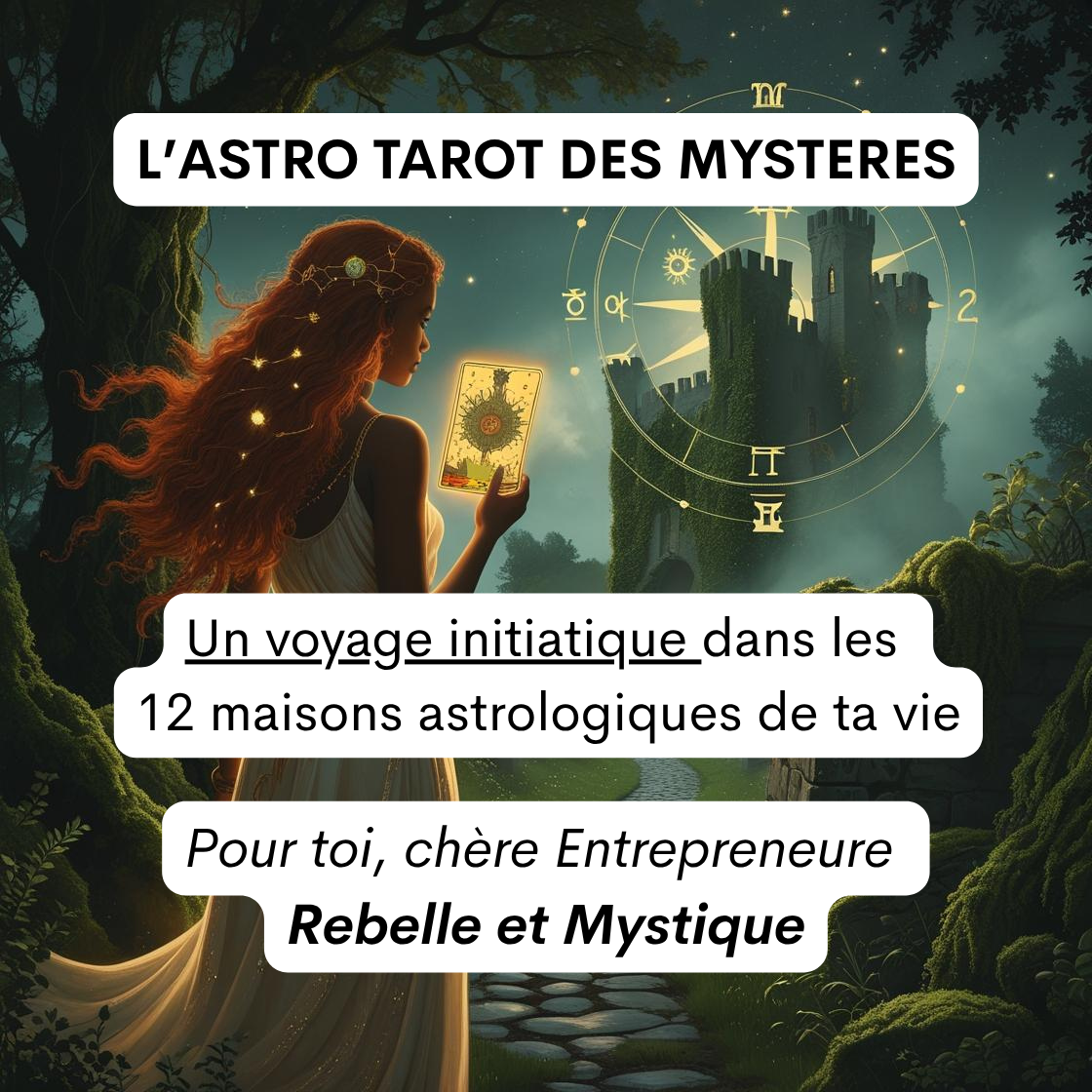 Une lecture unique avec le tarot pour traverser les 12 maisons astrologiques de ta vie, pour révéler les mystères de ton année à venir.